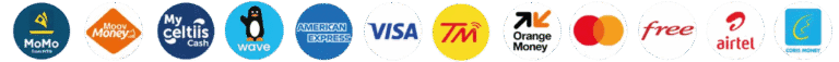 Cartes bancaires & Mobile Money (MTN, Moov, Orange, Wave).